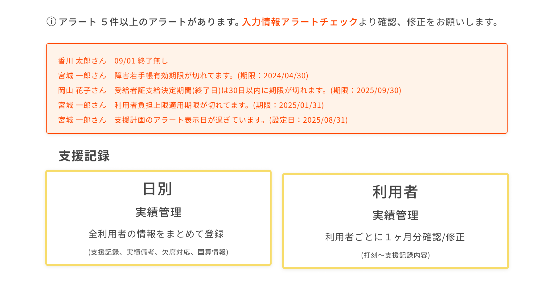 受給者証や障害者手帳、個別支援計画の期限が切れそうになるとトップページからお知らせ!