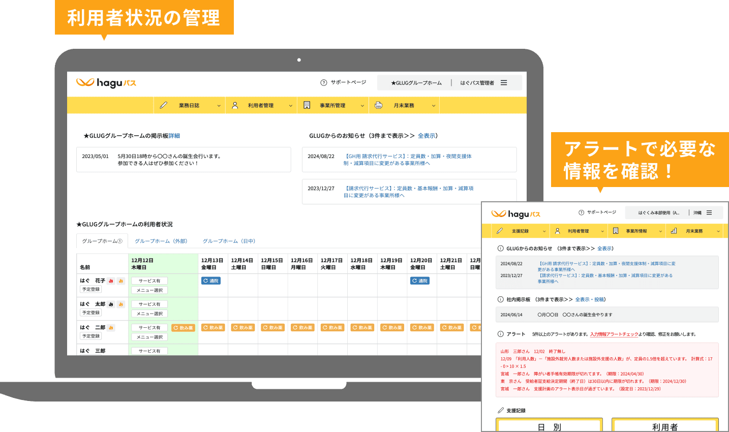 haguパスは福祉事業の運営を効率的に行うために生まれた、業務支援システムです。